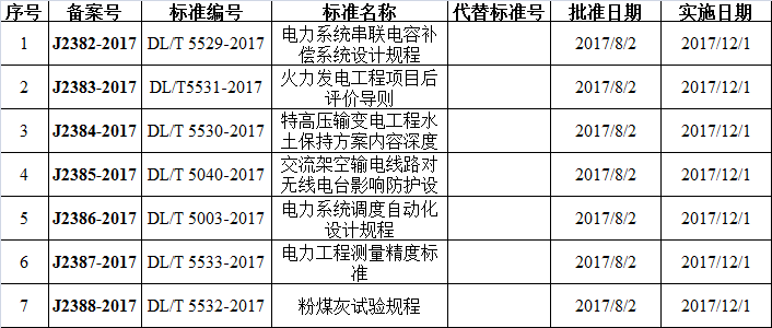 你院《關(guān)于<電力系統(tǒng)串聯(lián)電容補(bǔ)償系統(tǒng)設(shè)計(jì)規(guī)程>等7項(xiàng)行業(yè)標(biāo)準(zhǔn)申請備案的函》(電規(guī)標(biāo)[2017]15號)收悉。經(jīng)研究,同意《電力系統(tǒng)串聯(lián)電容補(bǔ)償系統(tǒng)設(shè)計(jì)規(guī)程》等7項(xiàng)行業(yè)標(biāo)準(zhǔn)作為“中華人民共和國工程建設(shè)行業(yè)標(biāo)準(zhǔn)”備案(見附件)。