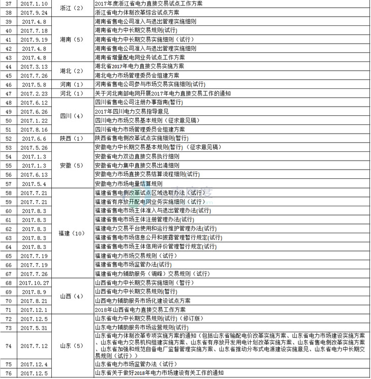 據(jù)不完全統(tǒng)計(jì),2017年全國(guó)28個(gè)省市出臺(tái)售電相關(guān)政策共103個(gè),具體如下表。