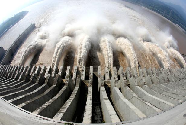長江2018年1號洪水通過三峽水庫時,三峽電站開啟深孔泄洪(攝影:饒家華)