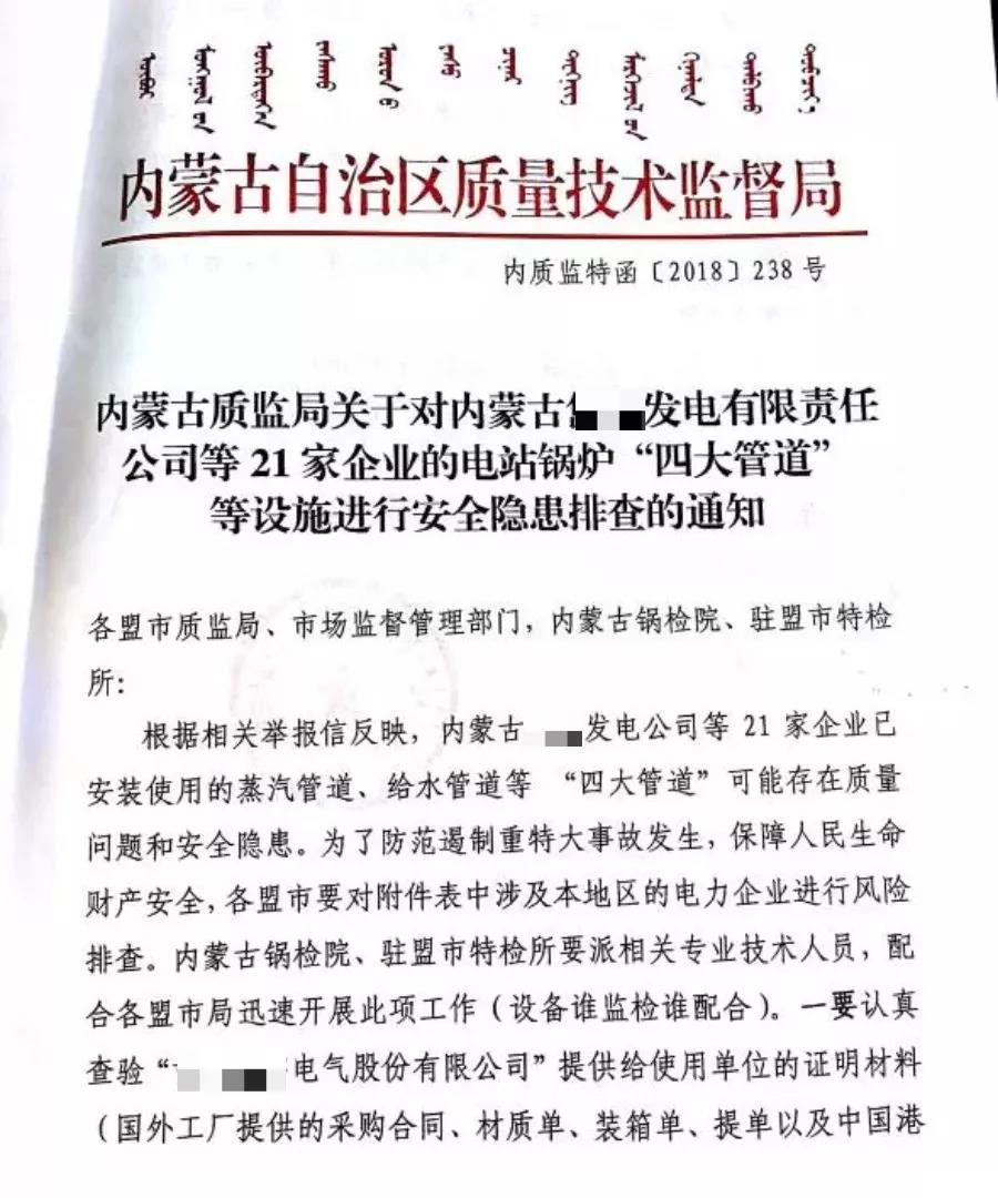 內(nèi)蒙質(zhì)監(jiān)局要求對(duì)21家電廠“四大管道”進(jìn)行隱患排查