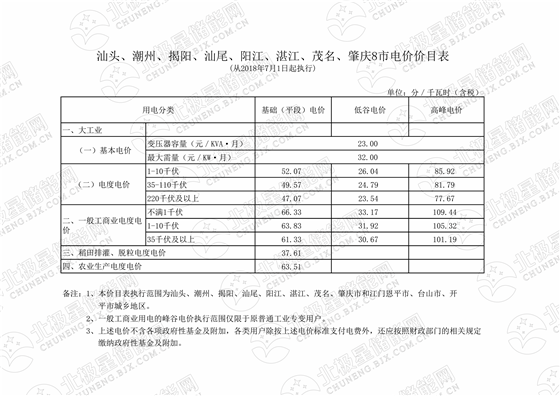 說明:圖中標(biāo)注數(shù)據(jù)為不滿1KV電壓等級(jí)峰谷價(jià)差