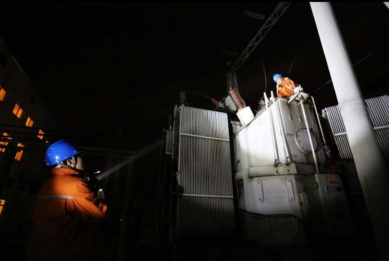 無錫供電公司變電檢修人員在110千伏洪峰變電站搶修1號主變多處滲漏油缺陷,確保即將到來的冬季用電高峰電網安全穩(wěn)定運行。
