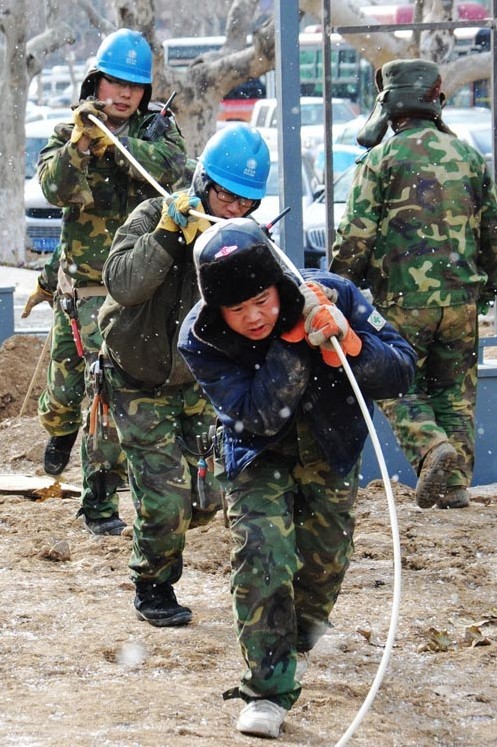 國(guó)家電網(wǎng)山東威海供電公司作業(yè)人員正在冒雪為市中心地下變電站35千伏寶泉站進(jìn)行高壓電纜線路敷設(shè)?! ?5千伏寶泉站新建工程是威海供電公司趕在年底完工的最后一項(xiàng)重點(diǎn)工程。廣大建設(shè)者為確保工程按期完工,
