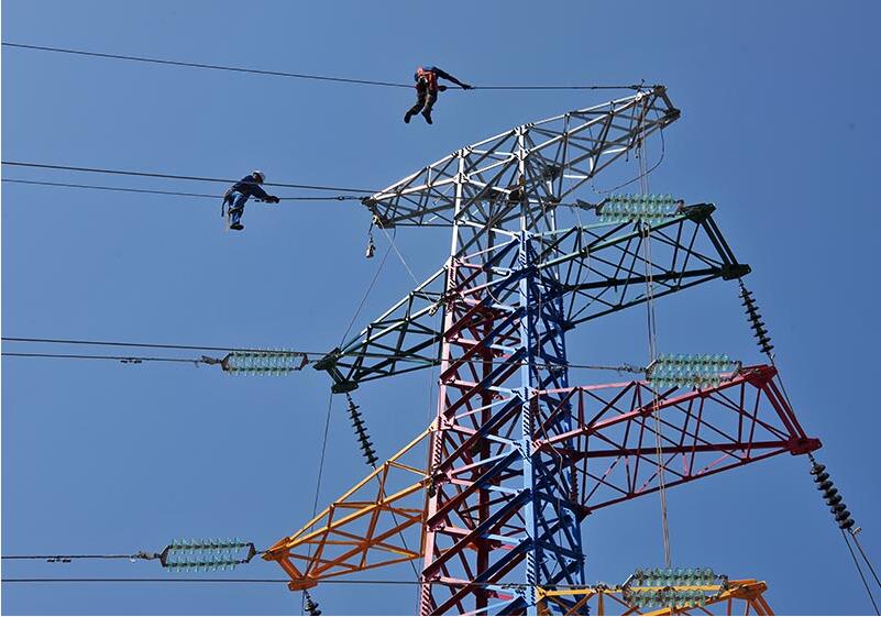 三基鐵塔上,施工人員各司其職,忙著安裝瓷瓶、防震錘、跳線,一切井然有序。“變電站設(shè)備安裝到位,現(xiàn)在在加緊調(diào)試,只等線路割接成功就要安排投運了,時間緊,天氣再熱也不能耽誤工期!”施工負責(zé)人薛維波說。