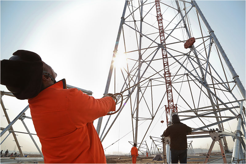 【背景】 榆橫—濰坊1000千伏特高壓交流輸變電工程山東昌樂(29標(biāo)段)首基鐵塔組立完成?! ∽鳛樯綎|省境內(nèi)的第二項(xiàng)特高壓工程,濰坊