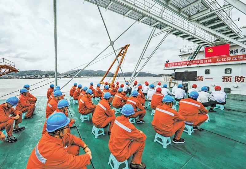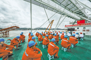 舟山供電公司員工在海纜施工船上集體收看黨的十九大開幕會(huì)。張帆 攝四川電力送變電建設(shè)有限公司共產(chǎn)黨員服務(wù)隊(duì)保電人員在甘孜藏區(qū)220千伏新孜Ⅰ、Ⅱ線400號(hào)桿塔現(xiàn)場(chǎng)蹲守保電,并用手機(jī)觀看黨的十九大開幕會(huì)直播