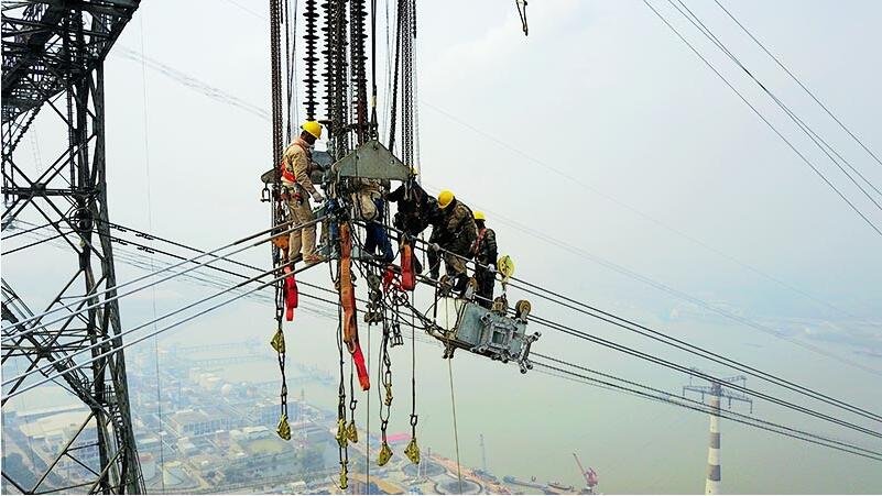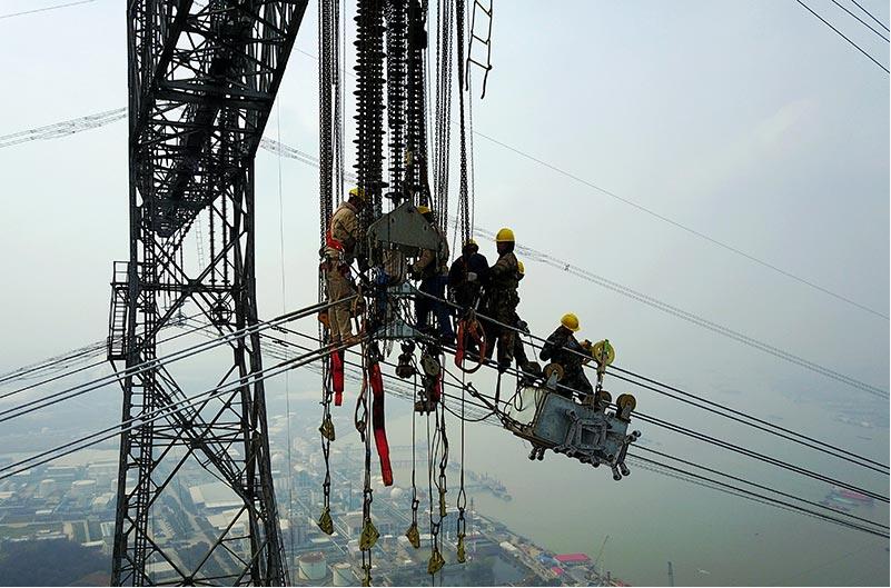 五峰山長江大跨越換線進行中