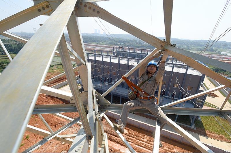 江西南昌供電公司員工對(duì)投運(yùn)前的臨空(港口)220千伏變電站線路架空部分進(jìn)行驗(yàn)收,臨空(港口)變電站的投運(yùn)工作已進(jìn)入最后沖刺階段。
