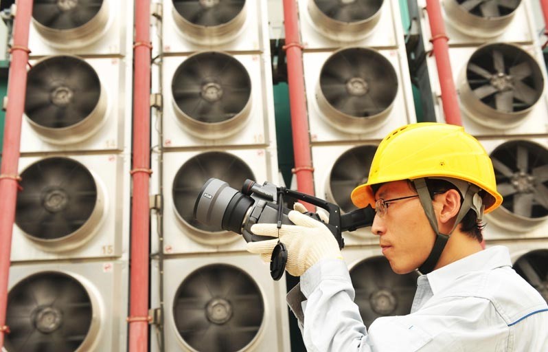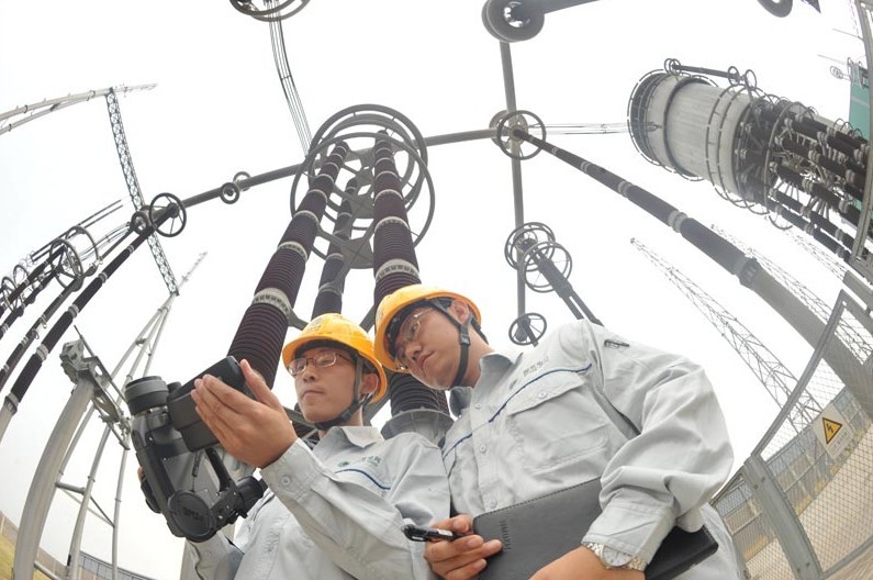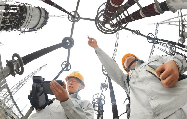 據(jù)統(tǒng)計(jì),今年1月至8月份四川錦屏水電站——蘇州的±800千伏特高壓輸電網(wǎng)累計(jì)輸送電量超過128億千瓦時(shí),最大輸送負(fù)荷達(dá)483萬千瓦,占江蘇全部區(qū)外來電負(fù)荷的三分之一以上。遠(yuǎn)方清潔水電輸入江蘇,成為當(dāng)?shù)赜行?zhàn)勝持續(xù)高溫天氣的功勛電能。今夏持續(xù)高溫,江蘇電網(wǎng)用電負(fù)荷屢創(chuàng)新高,江蘇最大用電負(fù)荷達(dá)到8141萬千瓦,比2012年增長12.6%。江蘇因此成為繼廣東省之后第二個(gè)最大用電負(fù)荷超8000萬千瓦的省份。圖為8月29日,運(yùn)行人員正在±800千伏特高壓蘇州換流站內(nèi)巡視設(shè)備。