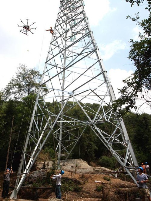 據(jù)了解,在山區(qū)進行輸電線路架線施工,因為山間樹木叢生,最難攻克的便是將引線從一基鐵塔拉向另一基鐵塔。以往,采用人工架線,引線“邁”過一座塔便需要至少3天。數(shù)控“架線工”的到來,大大提高了山區(qū)輸電工程架線的效率。