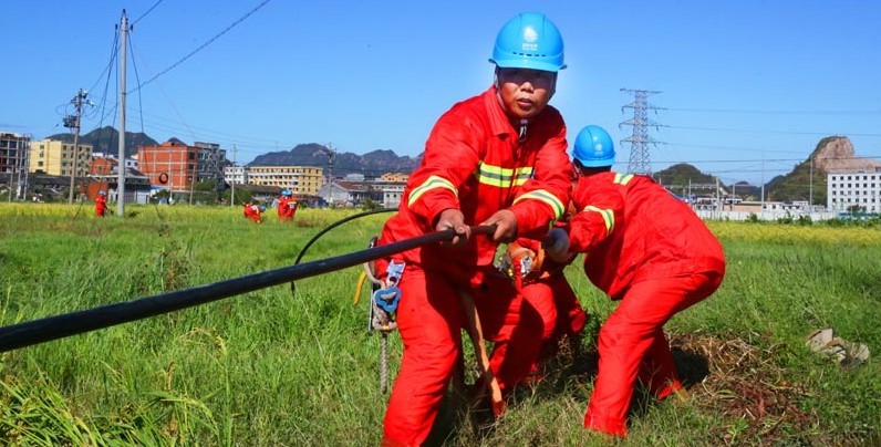 整個上午,在各個工作現場,三支隊伍的搶修工作同時鋪開,施工現場一片火熱。在碧藍色天空的映襯下,6部吊機、4部升高作業(yè)車伸展開黃色的臂膀,在一片片綠茫茫的田野中翩翩起舞,在100多名身著鮮紅色搶修服的工作人員點綴下,在構成了一副靚麗的風景畫。