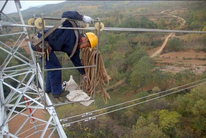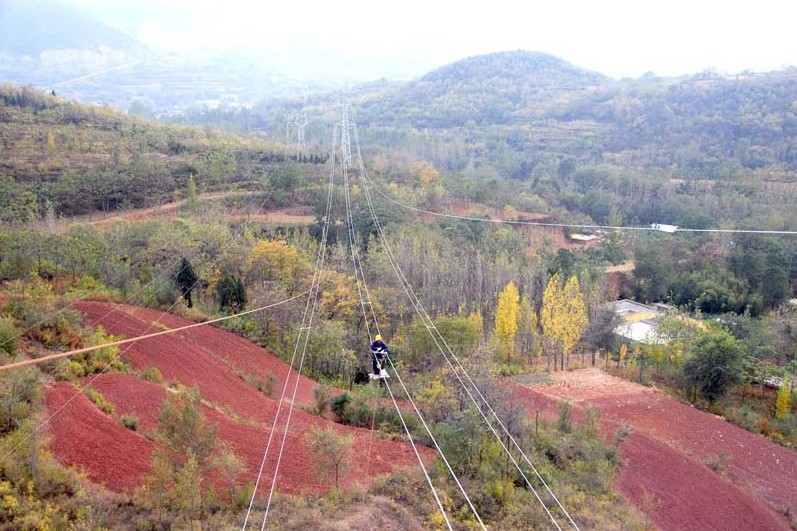 登封市白里坪是當(dāng)年抗日戰(zhàn)爭(zhēng)時(shí)期皮定鈞司令員領(lǐng)導(dǎo)的豫西抗日根據(jù)地,為加快革命老區(qū)經(jīng)濟(jì)騰飛,登封市電業(yè)局新建設(shè)的110千伏觀白線通過登封市電業(yè)局施工人員100余天的艱苦施工,穿越3個(gè)鄉(xiāng)鎮(zhèn),橫跨17座山梁的18.7公里供電線路全線竣工,該線路的投運(yùn),將為老區(qū)建設(shè)在供電設(shè)施上提供堅(jiān)強(qiáng)保證。(圖為10月該線路間隔棒安裝工作現(xiàn)場(chǎng))