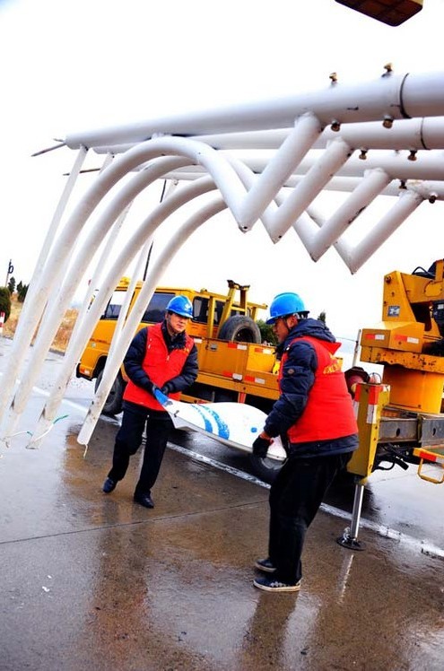 寒風(fēng)呼嘯,大雪飄飄,棲霞公司路燈全體干部員工按照市政府的部署和公司統(tǒng)一安排,圓滿完成209省道太虛宮立交橋至松山高速公路出口段單邊26公里500基路燈的拆撤施工任務(wù),比市政府要求的工期提前17天完成任務(wù),為市政府建設(shè)工程209省道加寬和長春湖大橋維修提供了便利和盡早開工爭取了寶貴時間。