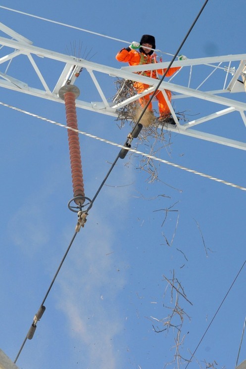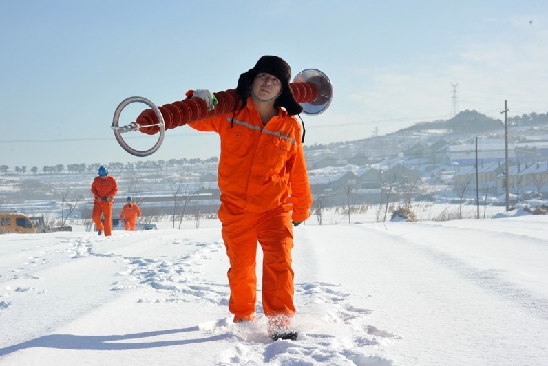 威海冬季雪霧天密集,山東威海供電公司作業(yè)人員趁著難得的雪晴天開展高空作業(yè),對區(qū)域內(nèi)所有的220千伏備用線路進行消缺,為主網(wǎng)安全穩(wěn)定運行提升保險系數(shù)。圖為1月,作業(yè)人員冒嚴寒更換220千伏寧戚線老化受損的絕緣子。220千伏寧戚線從山東煙臺到威海,是威海最早接入的220千伏線路之一,為威海區(qū)域經(jīng)濟發(fā)展提供了強勁的動力之源。