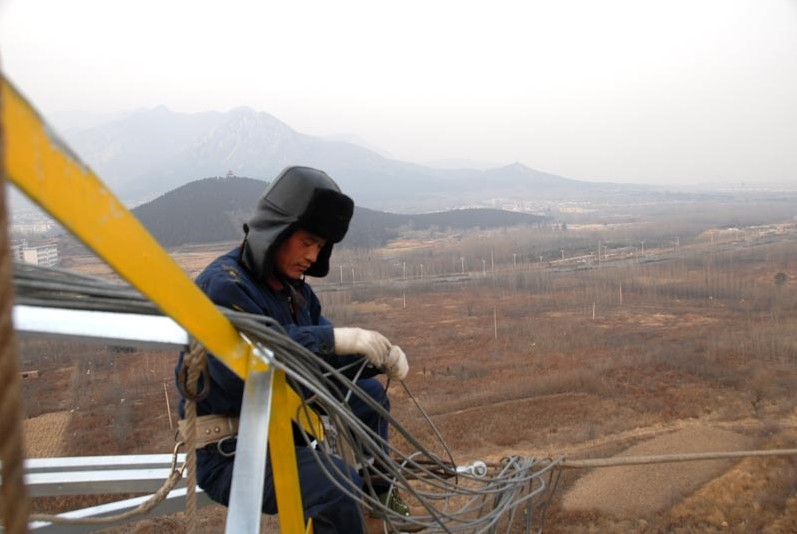 入冬以來,多年來罕見的長期霧霾籠罩使外線施工人員的心理和身體遇到了嚴(yán)峻挑戰(zhàn)。在河南省登封市電業(yè)局110千伏登潁線施工現(xiàn)場,為保證該線路1月31日竣工投運(yùn),外線工們以每天10個(gè)小時(shí)的工作時(shí)間,堅(jiān)持奮戰(zhàn)在濃霧籠罩的高塔銀線之上。