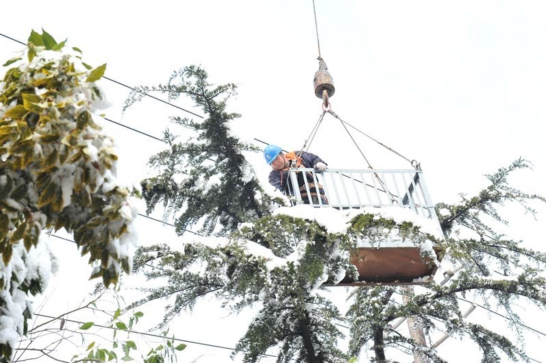 江蘇鎮(zhèn)江遭遇立春以來(lái)的最大降雪,路面積雪達(dá)到15厘米。19日清晨7時(shí)許,積雪壓斷樹枝導(dǎo)致諫壁水廠附近的10千伏于北661線跳閘,影響了諫壁排水站和周邊村莊500多戶居民的正常