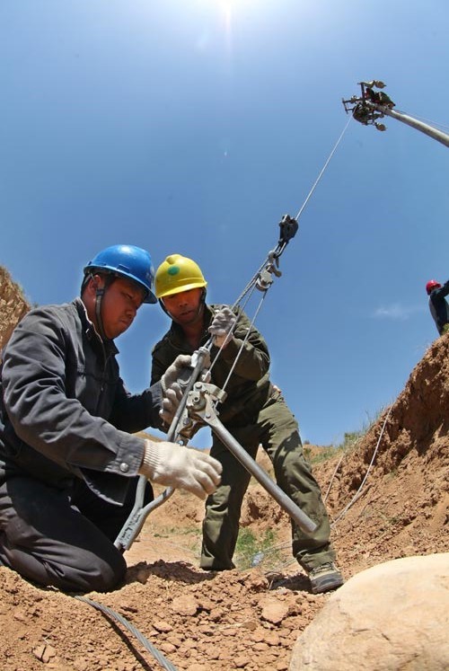 為助推社會主義新農(nóng)村建設(shè)和新型城鎮(zhèn)化、城鄉(xiāng)一體化建設(shè),冀北張家口供電公司在4區(qū)13縣全面加快新一輪農(nóng)村電網(wǎng)升級工程進度。2013年,在農(nóng)村電網(wǎng)改造升級工程資金項目投入達1.4億元。新增35千伏、10千伏線路、0.4千伏線路433.92公里,新建35千伏變電站3座,改造村網(wǎng)41個,安裝低壓表箱4010個,改造戶數(shù)7500戶。屆時,張家口市農(nóng)村供電可靠率可達99.87%。圖為,5月14日施工人員正在崇禮縣高上523線路進行農(nóng)網(wǎng)改造。