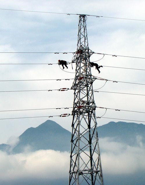 針對夏季雷電暴雨頻發(fā)特點,連日來,巴東縣供電公司集中人力、時間對雷電密集區(qū)域輸電線路桿塔接地裝置、絕緣子進行檢修更換,以減少雷電對輸電線路的危害,確保電網(wǎng)安全運行。圖為:5月19日,供電員工在更換35千伏雷溪線43號塔絕緣子串施工。