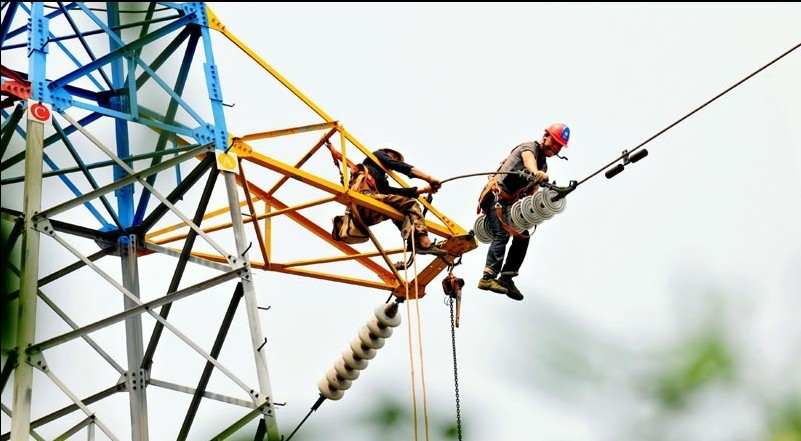 為確保今年高考期間可靠供電,湖北巴東縣供電公司早部署、早行動(dòng),集中人力、時(shí)間對(duì)重點(diǎn)保電線路進(jìn)行巡視檢修,及時(shí)消除線路、設(shè)備隱患,確保電網(wǎng)安全運(yùn)行和高考期間正常供電。圖為:5月23日,供電員工冒著35度高溫更換110千伏西家線路A相導(dǎo)線。