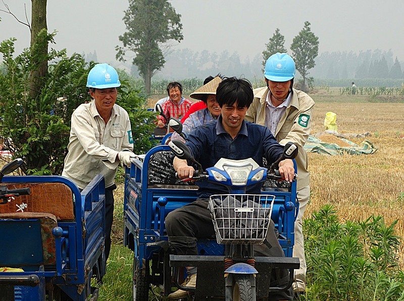 圖3:為6月5日,胡莊供電所服務(wù)二隊(duì)正在為留守老人搶收小麥。