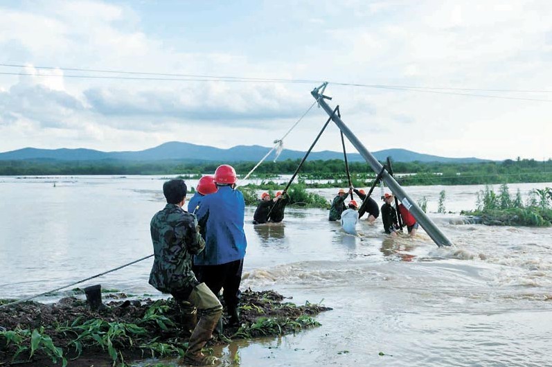 7月5日下午,黑龍江尚志市供電公司搶修人員在齊腰深的洪水中架設(shè)電桿。進(jìn)入7月,連續(xù)強降雨導(dǎo)致尚志市多處河道漲水,部分地區(qū)突發(fā)山洪,多條10千伏線路不同程度受損。災(zāi)情發(fā)生后,尚志市供電公司迅速啟動防汛預(yù)案,展開抗洪搶險工作。截至6日晚,受損線路及設(shè)備已全部恢復(fù)供電。