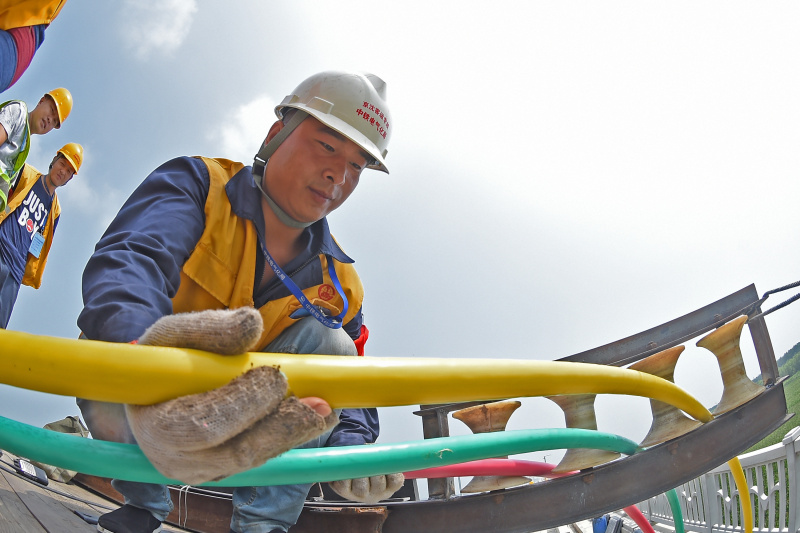 7月18日,中鐵電氣化局工程技術人員在敷設電力高壓電纜。