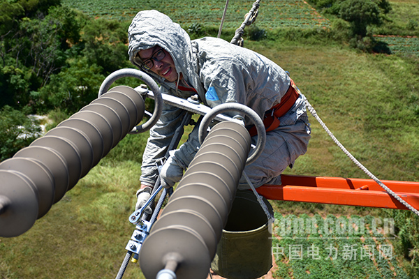 中電新聞網(wǎng)訊 通訊員 陳蒸 陳德鈞 鄭孝干 報(bào)道 9月14日,在福建福清110千伏沙牛線16號(hào)塔現(xiàn)場,經(jīng)過一個(gè)多小時(shí)的高空帶電作業(yè),國網(wǎng)福州供電公司輸電帶電作業(yè)班成功完成一起節(jié)點(diǎn)嚴(yán)重發(fā)熱的緊急消缺作業(yè)。
