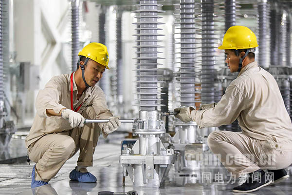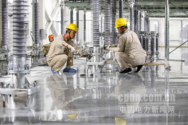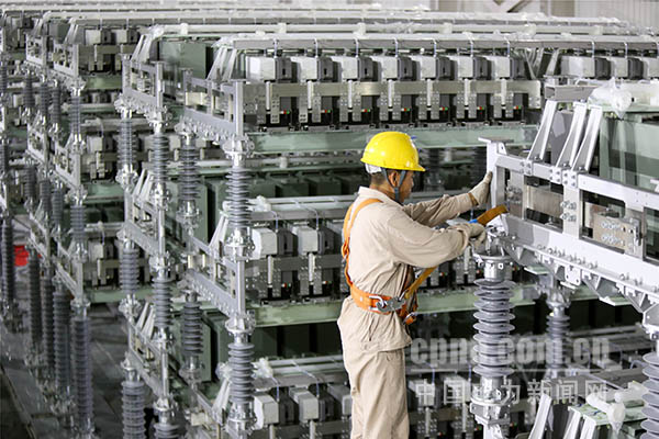 中電新聞網(wǎng)訊 通訊員 湯德宏 報道 7月31日,電力作業(yè)人員正在蘇州南部電網(wǎng)500千伏統(tǒng)一潮流控制器(UPFC) 示范工程閥廳內(nèi)進行換流閥安裝。 當(dāng)日,位于江蘇蘇州的500千伏“統(tǒng)一潮流控制器”示范工程加緊施工,目前,該工程全面進入電氣設(shè)備安裝調(diào)試高峰。