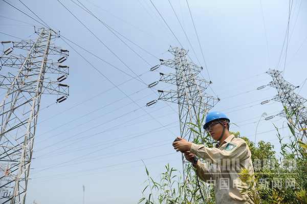 中電新聞網(wǎng)訊 通訊員 黃飛英 報道 7月24日上午,高溫高負荷導致江蘇吳江區(qū)110千伏黎禊線B、C相接頭處發(fā)生發(fā)熱現(xiàn)象,國網(wǎng)江蘇蘇州吳江區(qū)供電公司組織運維人員冒著40攝氏度高溫,對該線路線夾、連接處等重點發(fā)熱部位進行跟蹤測溫,并將測溫結(jié)果記錄下來,確保輸電線路處于安全運行狀態(tài)。