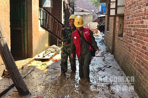 7月5日早上7點不到,該公司電力搶修隊員已經(jīng)全部就緒,隊長丁誠瀚給同事們派發(fā)搶修工作任務(wù)后,電力員工們頂著烈日,大汗淋漓,衣襟濕了又干,干了又濕,干勁十足,腳下一切障礙都無法阻止他們搶修前行的步伐,兩天來近二十幾個小時鞋子里泡著臟和水泥水,可他們依然紋絲不動的站在樓梯上奮戰(zhàn),從沒聽到他們叫一聲苦和累,他們伸出雙手扶起摔倒騎摩托車的蔣女士,協(xié)助護(hù)送需要幫助的人一起走過又滑又臟泥濘路段,這些都是災(zāi)難面前顯大愛,正能量傳遍滿天下的正面體現(xiàn),讓我們?yōu)檫@些可愛的電力人點贊。