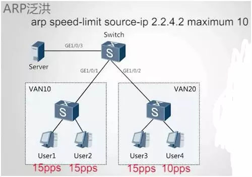 ·設(shè)備因處理大量ARP報文而導(dǎo)致CPU負(fù)荷過重,同時設(shè)備學(xué)習(xí)大量的ARP報文可能導(dǎo)致設(shè)備ARP表項資源被無效的ARP條目耗盡,造成合法用戶的ARP報文不能繼續(xù)生成ARP條目,進(jìn)而導(dǎo)致用戶無法正常通信。