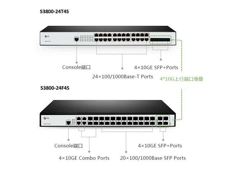 自此,關(guān)于交換機(jī)的兩種端口功能您應(yīng)該有了清楚的了解,堆疊和級(jí)聯(lián)各有各的優(yōu)點(diǎn)和缺點(diǎn),怎么選擇需要根據(jù)您的實(shí)際情況考慮。飛速(FS)S3800-24F4S S3800-24T4S交換機(jī)支持堆疊功能,也是眾多大型項(xiàng)目的重要選型設(shè)備