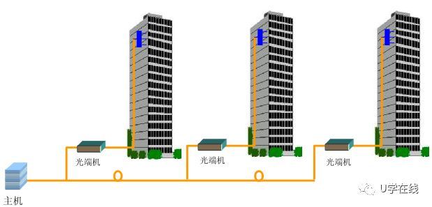 光纖分布系統(tǒng)是采用光纖作為傳輸介質(zhì),由覆蓋端機(jī)(主單元、接口單元)、遠(yuǎn)端覆蓋單元、天線(xiàn)、光分/合路器件組成。由于光纖損耗小,適合于長(zhǎng)距離傳輸,該系統(tǒng)廣泛應(yīng)用于大型寫(xiě)字樓、酒店、地下隧道、居民樓等室內(nèi)覆蓋系統(tǒng)的建設(shè)。如下圖: