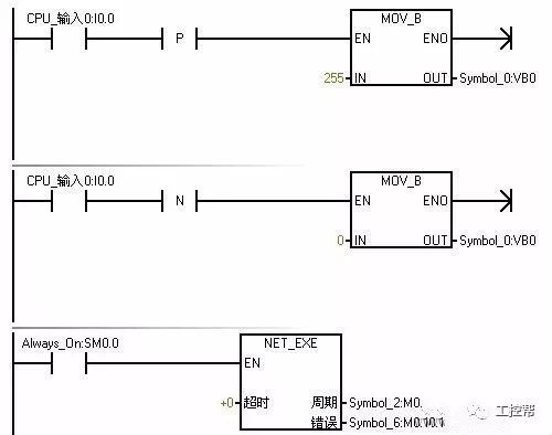 簡(jiǎn)單點(diǎn)說(shuō),就是用主機(jī)I0.0點(diǎn)控制從機(jī)QB0一個(gè)字節(jié)的輸出;用從機(jī)I0.0點(diǎn)控制主機(jī)QB0一個(gè)字節(jié)的輸出。