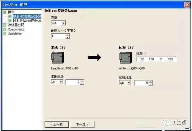 雙擊組態(tài)Put界面,相當(dāng)于將主站VB0映射到分站QB0(寫(xiě)一個(gè)字節(jié)的數(shù)據(jù))