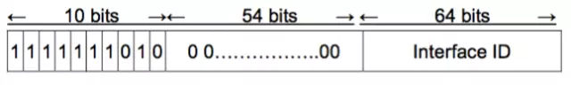 也是用前10 bits為首碼,內容固定為1111111010,接著是連續(xù)54 bits的0,最后的64 bits也是接口標識。