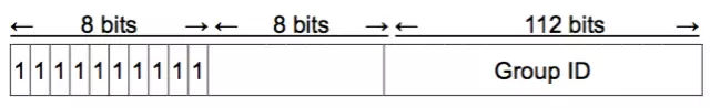 這種類型的 IPv6 地址用前8 bits為首碼,內容固定為11111111,最后112 bits為Group ID。