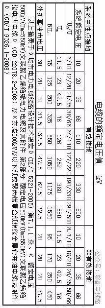 額定電壓是電纜及附件設計和電性試驗用的基準電壓,用U0/U表示。