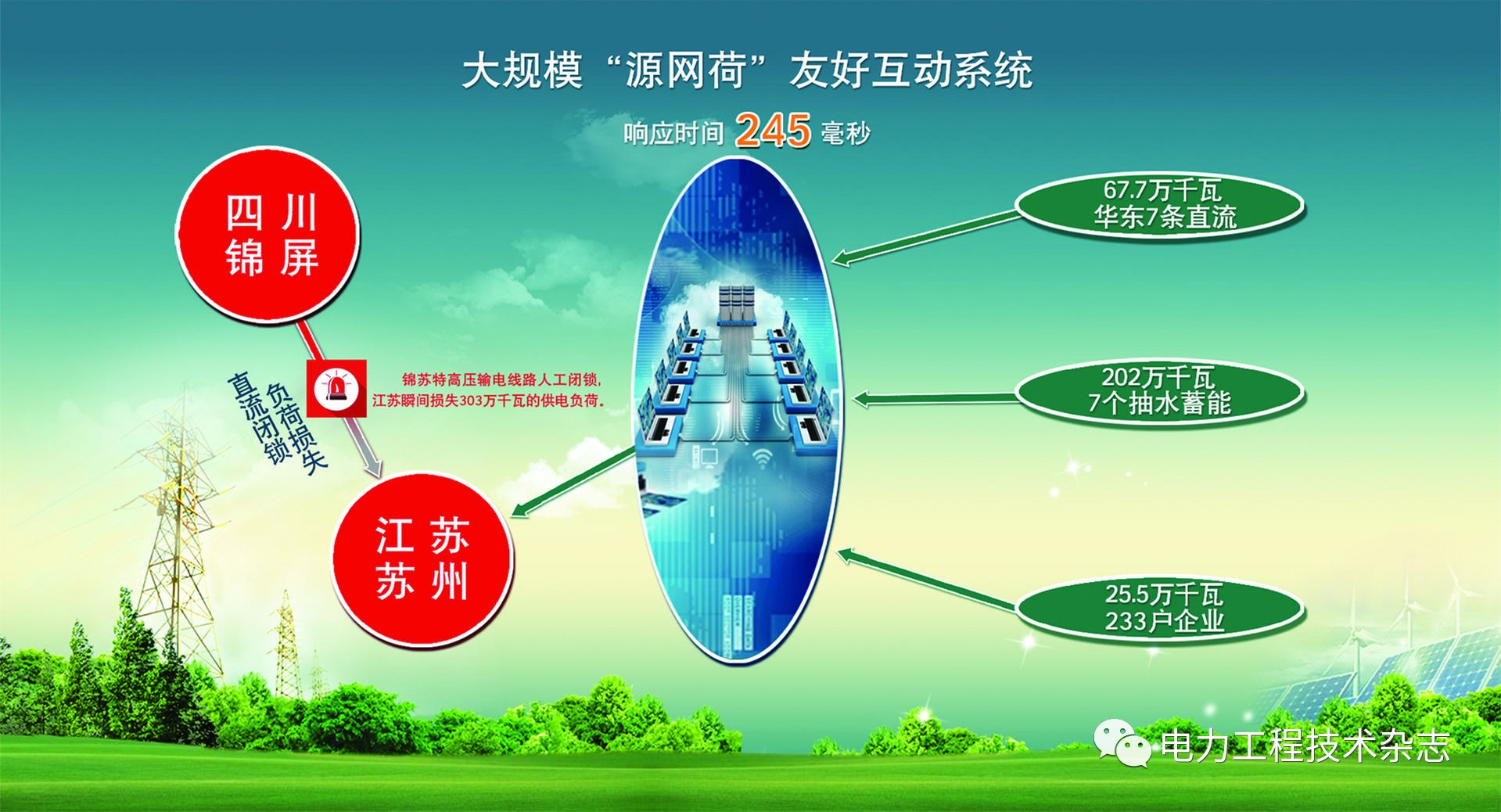 國內(nèi)首套大規(guī)模源網(wǎng)荷友好互動(dòng)系統(tǒng)精準(zhǔn)切負(fù)荷實(shí)切演練圓滿完成。245ms內(nèi),江蘇233戶電力用戶255MW的用電負(fù)荷被瞬間切除,此舉與其他保障措施一起,瞬間平衡了蘇州電網(wǎng)3000MW的負(fù)荷缺口,電網(wǎng)安全得到保障。
