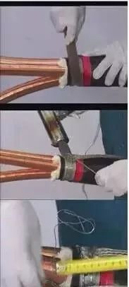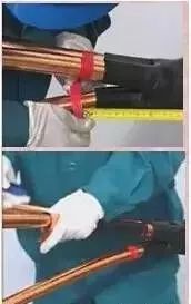 自分支手套上端部50px處做好標(biāo)記剝除銅屏蔽。