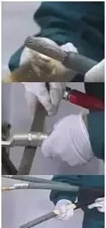 自斷口處75px用扎絲扎緊鋼鎧,既能做標(biāo)記又能使鋼鎧鋸開后不散亂。