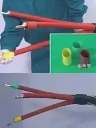 根據(jù)事先做好的標(biāo)記,穿入相色管,熱縮緊固。