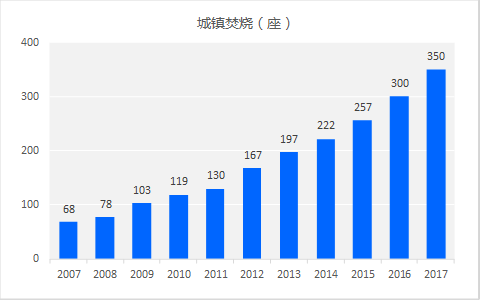 2007-2017已建成垃圾焚燒廠數(shù)量(座)