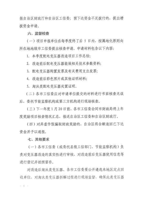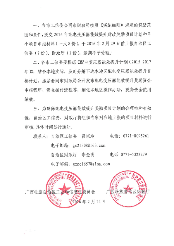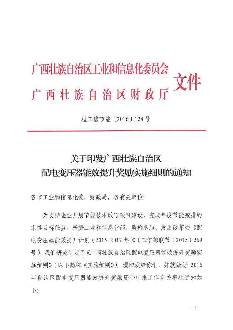 《廣西壯族自治區(qū)配電變壓器能效提升獎(jiǎng)勵(lì)實(shí)施細(xì)則》項(xiàng)目完工時(shí)間在2016年1月1日之后的,原則上屬于工業(yè)和信息化部《高耗能落機(jī)電設(shè)備(產(chǎn)品)