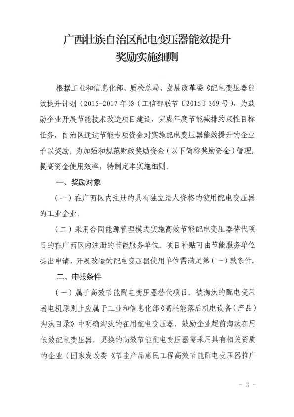 《廣西壯族自治區(qū)配電變壓器能效提升獎(jiǎng)勵(lì)實(shí)施細(xì)則》