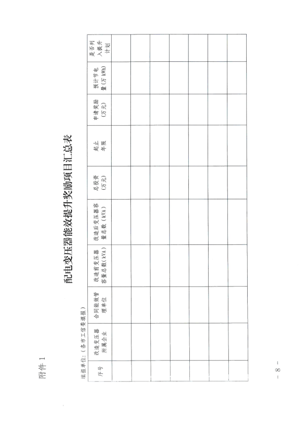項(xiàng)目完工時(shí)間在2016年1月1日之后的,原則上屬于工業(yè)和信息化部《高耗能落機(jī)電設(shè)備(產(chǎn)品)淘汰目錄》中明確淘汰的在用配電變壓器,更換后額定容量在30kVA-1600kVA的油浸式配電變壓器和額定容量30kVA-2500kVA的干式配電變壓器,必須符合《三相配電變壓器能效限定值及能效等級(jí)》(GB 20052-2013)標(biāo)準(zhǔn)的能效等級(jí)2級(jí)以上的非晶合金變壓器,達(dá)到能效1級(jí)的獎(jiǎng)勵(lì)標(biāo)準(zhǔn)為100元/千伏安,達(dá)到能效2級(jí)的獎(jiǎng)勵(lì)標(biāo)準(zhǔn)為80元/千伏安;電工鋼帶類配電變壓器,達(dá)到1級(jí)的獎(jiǎng)勵(lì)標(biāo)準(zhǔn)為80元/千伏安,達(dá)到2級(jí)的獎(jiǎng)勵(lì)標(biāo)準(zhǔn)為65元/千伏安。