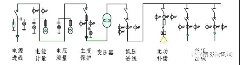 變壓器一次側(cè)采用單母線接線,二次側(cè)采用單母線分段接線