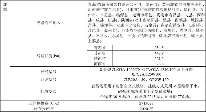 本工程直流輸電線路起于青海省境內(nèi)的海南換流站,止于河南省境內(nèi)的駐馬店換流站,總長約1577.5km,采用單回雙極架設(shè)。途經(jīng)青海省(海南藏族自治州、黃南藏族自治州)、甘肅省(甘南藏族自治州、定西市、隴南市)、陜西省(漢中市、安康市、商洛市)、河南省(南陽市、平頂山市、駐馬店市),共4個省級行政區(qū),11個地市級行政區(qū),37個縣級行政區(qū)。其中,青海省境內(nèi)全長約234.3km,甘肅省境內(nèi)全長約442.9km,陜西省境內(nèi)全長約521.5km,河南省境內(nèi)全長約378.8km。