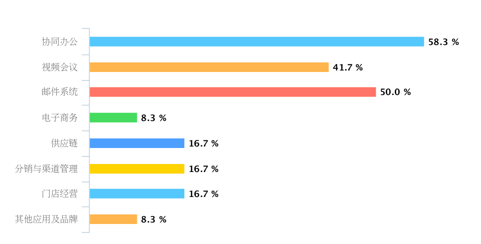 據(jù)不完全統(tǒng)計(jì),如上圖所示,目前大多數(shù)企業(yè)使用的SaaS系統(tǒng)集中于協(xié)同辦公、郵件系統(tǒng)和視頻會議三方面。人們對SaaS應(yīng)用場景的期待表現(xiàn)在團(tuán)隊(duì)內(nèi)部協(xié)調(diào)辦公、非核心業(yè)務(wù)(會議管理、遠(yuǎn)程視頻、郵箱等),以及與消費(fèi)者、會員有關(guān)的場景。且對于數(shù)據(jù)安全的擔(dān)憂也是普遍存在的。