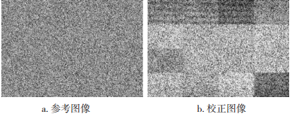 為了解決校正系數(shù)預(yù)測的問題,本文提出采用隨機(jī)點(diǎn)圖像和POC算法構(gòu)建校正系數(shù)預(yù)測模型。首先將隨機(jī)點(diǎn)圖像的背景設(shè)置成黑色,然后對隨機(jī)點(diǎn)圖像進(jìn)行圖像采集并處理,最后聯(lián)合已知的隨機(jī)點(diǎn)參考圖像進(jìn)行各像素點(diǎn)的位移預(yù)測以獲取校正模型[16]。隨機(jī)點(diǎn)圖像如圖4所示,展示了參考隨機(jī)點(diǎn)圖像和圖像采集系統(tǒng)對隨機(jī)點(diǎn)圖像進(jìn)行圖像采集獲取到的照片。